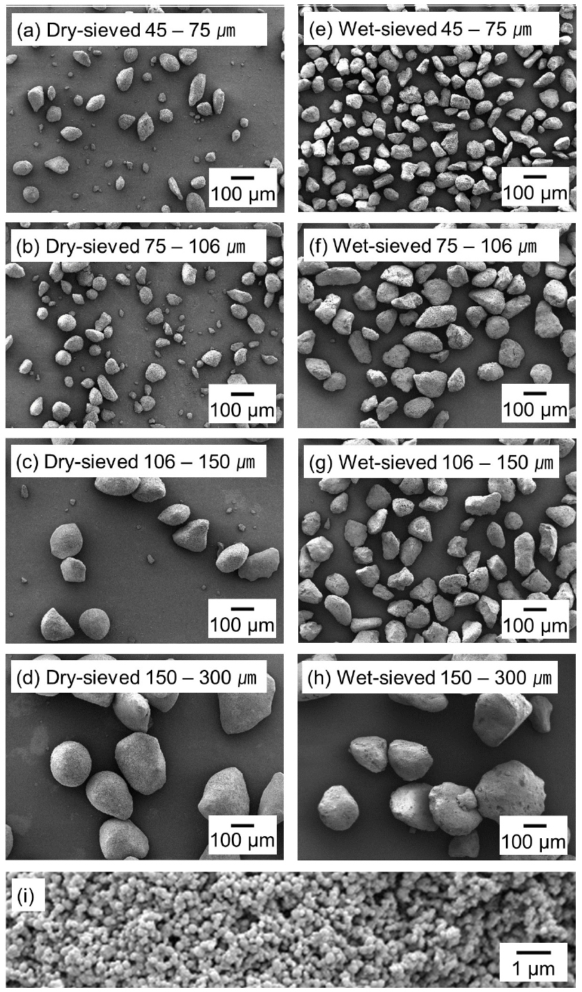 - In recent years, a novel method for producing titanium (Ti) with a low oxygen (O) concentration has been developed to overcome the limitations of the commercial Ti production process, the Kroll process. This method involves the reduction of titanium dioxide (TiO2) using magnesium (Mg) in a hydrogen gas (H2) atmosphere. In this study, the effects of the sieving method and the particle size of the TiO2 feed on the O concentration in the reduced Ti product were investigated, based on a thermodynamic analysis of the magnesiothermic reduction mechanism. Titanium hydride (TiH2) powder containing 0.415 – 0.480 mass%O was directly produced by reducing dry-sieved TiO2 feed, with a size range of 45 – 300 μm, using Mg under a 10 % H2 mixed gas atmosphere at 973 K. Furthermore, by comparing the magnesiothermic reduction results of wet-sieved TiO2 feed, the influence of the sieving method on the O concentration in the TiH2 product was evaluated.