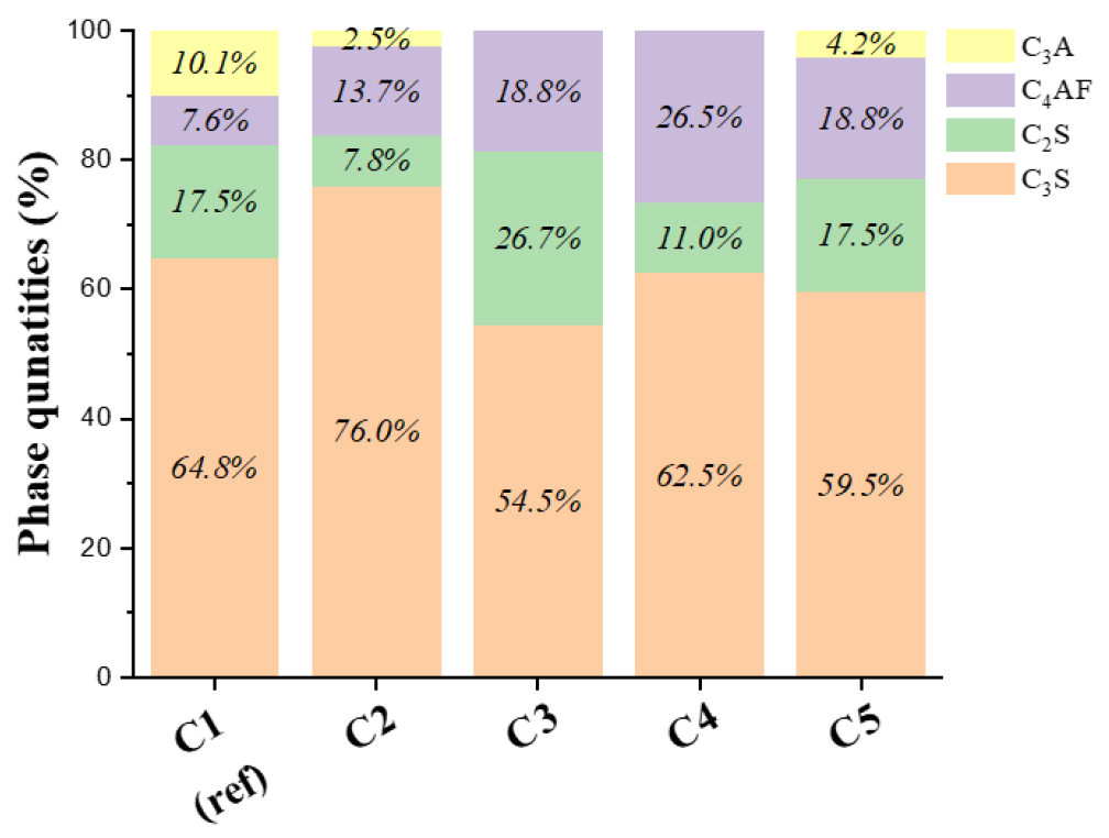 - In the cement industry, research on replacing the primary raw material, limestone, with non-carbonate industrial by-products is essential to reduce CO2 emissions. This study aims to manufacture high-performance cement clinker using a mixture of Kambara Reactor (KR) slag and reduction slag, which are by-products of the steelmaking process. A total of 5 types of clinker were sintered at 1,450℃, with the mixed slag substitution rate (0, 10, 15 wt. %) and Lime Saturation Factor (LSF: 100, 101) set as the main variables. The raw material characterization results demonstrated that the KR and reduction slags contained approximately 20~34 wt. % of belite (Dicalcium Silicate, C2S), an intermediate product in clinker phases, indicating their potential to shorten the alite (Tricalcium Silicate, C3S) formation reaction pathway. In particular, reduction slag containing 60 wt. % f Mayenite (Dodecacalcium hepta-aluminate, C12A7) as its main mineral phase, which was expected to promote the sintering process. A quantitative mineral phase analysis of the clinker revealed that 10 wt. % mixed slag substitution and an LSF of 100, the content of C3S, the main strength developing mineral, was 76.0 wt. %. This value was significantly higher than that of the reference clinker (C3S, 64.8 wt. %), which had no by-product substitution, confirming the potential for high performance. Furthermore, the TG/DSC analysis showed that the initial C3S formation temperature for the mixed slag condition was 1,206℃, which is up to 65℃ lower than that of the reference. This indicates that the use of mixed slag enhances burnability. This is attributed to the combined effects of C2S in the slag acting as a precursor to shorten the reaction pathway, and C12A7 in the reduction slag acting as a flux. This approach, offers the advantage of simultaneously achieving high performance and enhanced burnability and, presents a novel pathway for the development of low-carbon, high-performance cement.